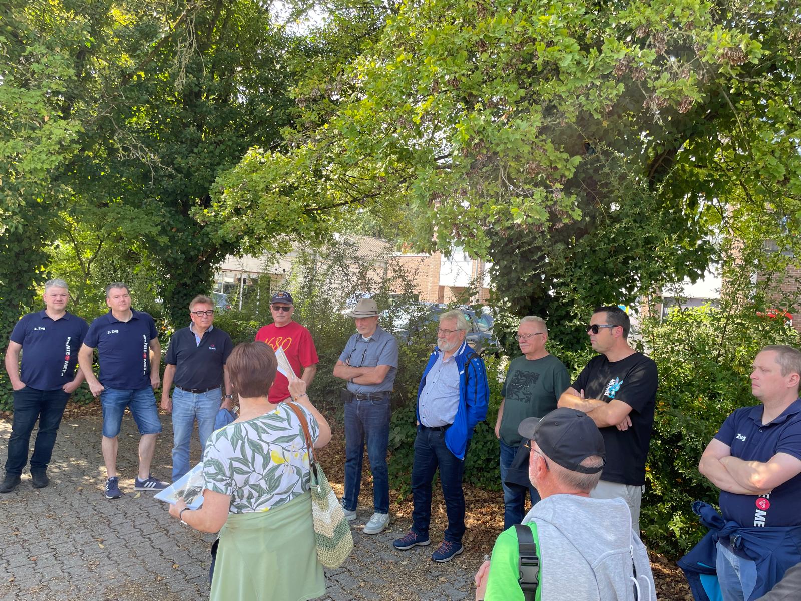 Ein besseres Wetter wäre gar nicht möglich gewesen, bei herrlichen Temperaturen und absolut regenfrei begaben sich 29 Teilnehmer nach der Begrüßung dann zum Rathaus, wo Uschi Hüsch von der Gemeinde Alpen bereits auf uns wartete. Wir hatten unter Ihrer Führung einen Spaziergang durch unseren Heimatort vereinbart, wobei Sie uns geballte Informationen über die historische Entwicklung der Gastronomie vermittelten. Es war spannend und interessant, neues „Altes“ über Alpen zu erfahren.