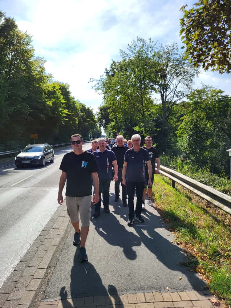 Dann legten wir die erste Pause ein, es wurde höchste Zeit, etwas gegen aufkommende Dehydrierung zu unternehmen, so gab es dann auf dem „Nepicks-Platz“ einige kühle Getränke. Auch die ehemalige Gaststätte Nepicks „Zur Hoffnung“, die leider im April 2021 abgerissen wurde, hatte für unseren Ort und vor allem für unserem Verein eine sehr große Bedeutung, es war bis dahin unser Vereinslokal.